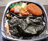 普段お弁当を一個食べると午後仕事にならないのですが、(なかなか消化出来ない。きっと胃がさぼっているに違いない!ちゃきちゃき働かんか!あたしの胃!!)今日は恐ろしくお腹が空いていたのと、お外が恐ろしく気持ちが良かったので、弁当を買ってみました。