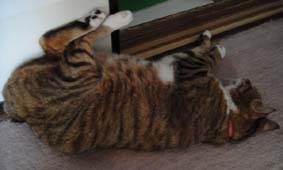 実家のみうも、毎日玄関に転がってるらしいです。モップ猫のように。
