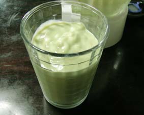 お味は、言うなれば…アボカドの青臭さとはちみつの甘味、そして色のイメージも手伝って「メロンシェイク」と言う感じ。