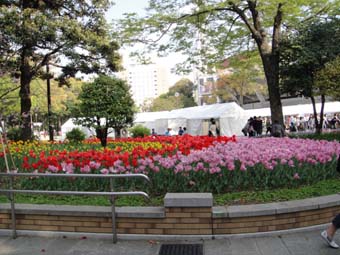横浜スタジアムの周りにある横浜公園ではチューリップが咲いていました。