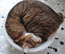 猫鍋。鍋には入らない(というか我が家は机や台所は上がってはいけない場所なので入るタイミングがないだけなんですが…^^;)ですが、洗面器には入ります(笑)