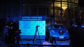 横浜マリンタワーの開業50周年のイベントのひとつで11/1~11/6の間、日産リーフの蓄電池でマリンタワーのイルミネーションを点灯させるというもの。