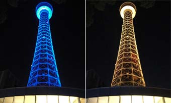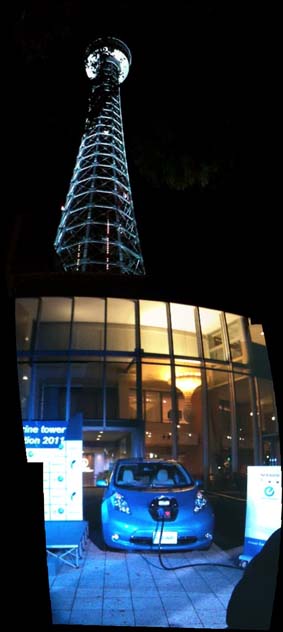 そしてこちらがリーフによる電力供給で点灯しているマリンタワー。