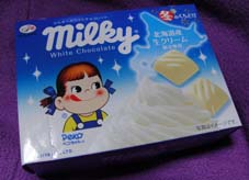これはホワイトチョコレートなのですが、ホワイトチョコレート独特のカカオバターの重さがなく、ややミルクっぽい味(ミルキーの味?)が強いです。