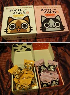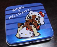 この缶の中に、好きなチロルチョコ(味は数種類あって、包み紙がアイルーとキティーの絵になっている)を9個詰めるもの。
