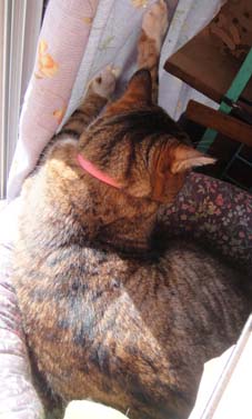 (ただ単に伸びをした際にカーテンに爪を引っかけただけ)