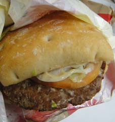 ビーフパティ+黒胡椒をまぶした輪切りのポークソーセージという肉+肉のどっしりとしたハンバーガーですが、ソーセージが薄いのと、胡椒とマスタードの味もあって、意外に美味しく食べられます。