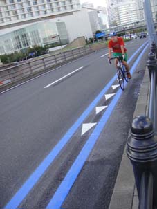 自転車レーンの線は青なんですね。
