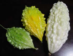 ↑ミニゴーヤ(2つ、内一つは熟し過ぎて黄色くなってます)と白いゴーヤ。