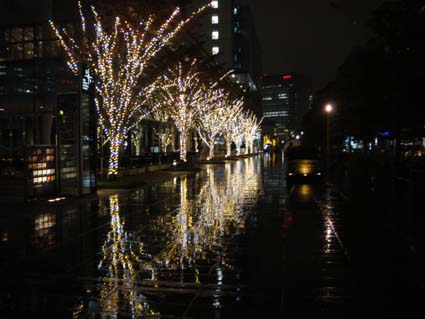 一昨日の写真なのですが、雨で濡れた地面にイルミネーションが写り込んで綺麗でした。