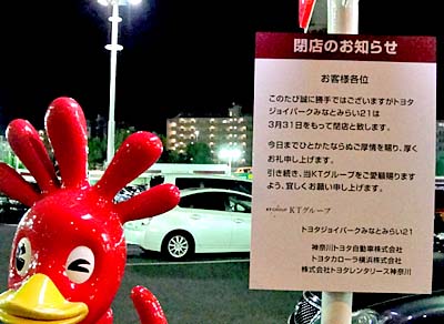 調べてみると、このトヨタジョイパークみなとみらい21店と隣にある日産カ-パレスみらとみらい21共に3/31付けで閉店する様子。
