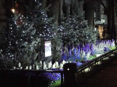 なので、このライトアップされている花壇も離れて見るとなんだか異様な雰囲気。