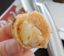 三角錐型のクッキーの中には、松の実と栗、アーモンドパウダー、そしてコニャックが入ったペーストのようなものが入っています。