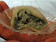 ミントクリームの中にチョコレートチップが混ぜ込んであります。