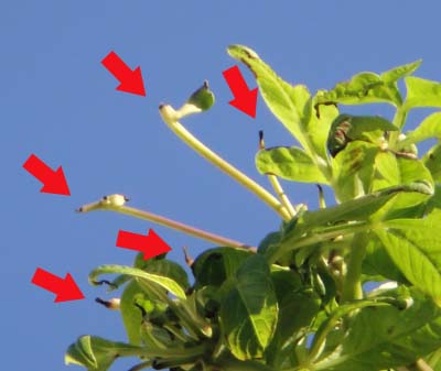 台風で打撃を受け、蕾がなかなか育たないところに寒波が来て落ちてしまった様子。