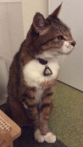 もう19歳なので、茶色の毛の中に白い毛が増えてきました。猫って後ろ足の筋肉がすごく発達していますが、その辺りの筋肉が細くなってきました。