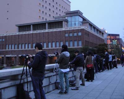 土曜日夕方の『今日の一枚』。三脚を立てて写真を撮ろうとしている人が写り込んでおります。