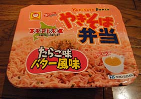 東洋水産と言えばマルちゃんでお馴染みですが、関東ではあまり馴染みのない北海道限定で流通しているやきそば弁当。そのたらこ味バター風味です。