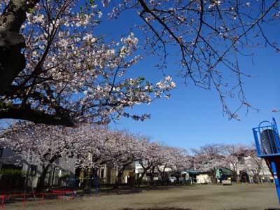 開花宣言、東京は満開宣言が出た桜ですが、毎年見に行く近所の公園はこんな感じ。