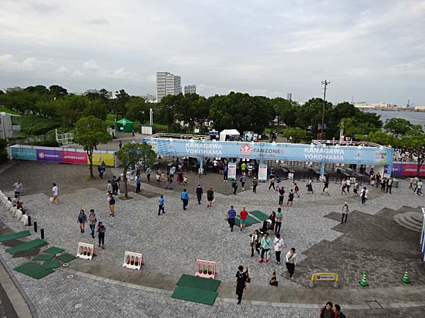 FANZONEとはパブリックビューイングみたいな物。TVか何かで聞いた記憶がありましたが、横浜では臨港パーク(パシフィコ横浜の裏手)で開催中。