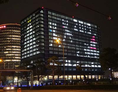 横浜野村ビルもそうでしたが、建設中のビルってこうやって凝ったイルミネーションをやる傾向があるのでしょうか?