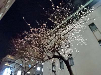 河津桜ではないと思うのですが、大通りに近く陽の当たる時間が長い場所に生えている桜はもう開花していました。
