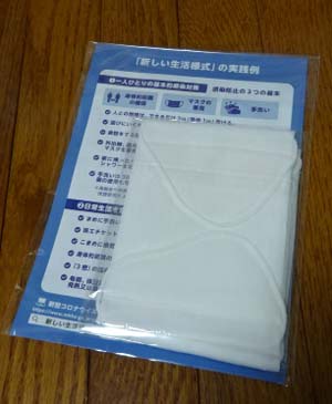 そういえば、遅まきながら(そうでもないのかな?)政府からマスクが届きました。