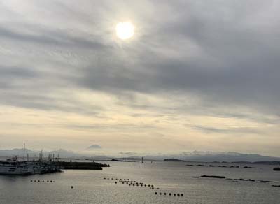 夕方、歯医者さんに行くために出かけた際、夕焼けと海がきれいだったので写真を撮ってみました。