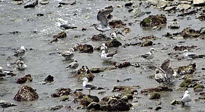 引き潮だと浅瀬に必ずウミネコが浅瀬にいっぱいいます。