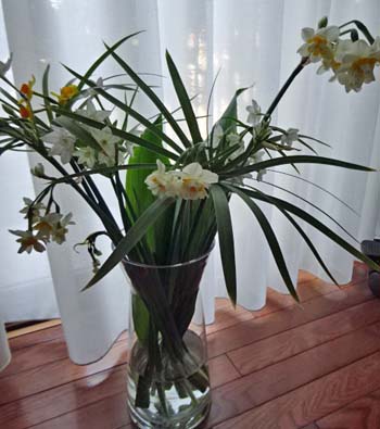見た目がいつもより多彩で華やかですが、緑がかった水仙の匂いがちょっと好みの匂いではなくて切ないです。