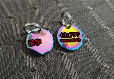 ステンレス製、Φ15㎜の小さな迷子札です。