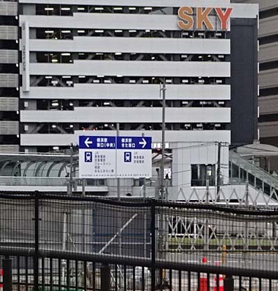 本当は6/1から使えるようになるはずだったので横浜駅寄りに駅への案内看板が立てられています。