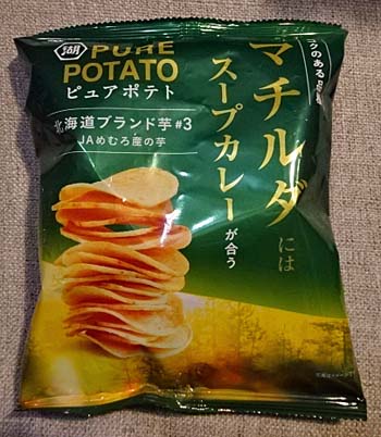 マチルダという品種のジャガイモで作られたスープカレー味のポテトチップス。