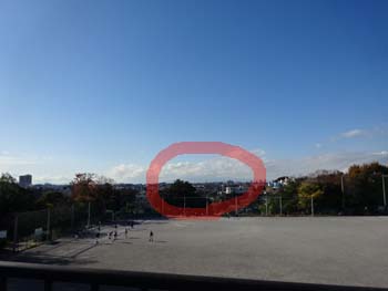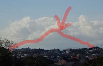 雲に隠れていてわかりにくいですが、富士山が見えました。