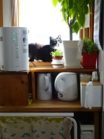 最近、ママはこの窓から庭に来る鳥を眺めるのがお気に入りの様子。