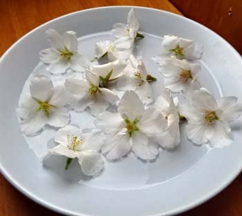 山に散歩に行ったところ、山桜が伸びすぎて道路に出ていたので枝の一部を道路管理者が切ってくれたのですが、花が沢山付いていたようで、道に桜の花が落ちていたので拾ってみました。