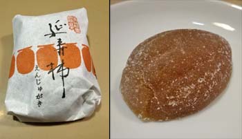 柿のお菓子は「延寿柿」という白餡を柿の練り羊羹で包んだお菓子が好きな味でした。