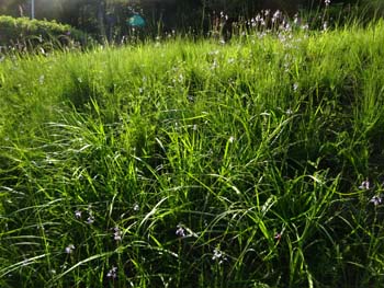 日が延びて来たので夕方散歩に出たら、草がきらきらしてきれいでした。