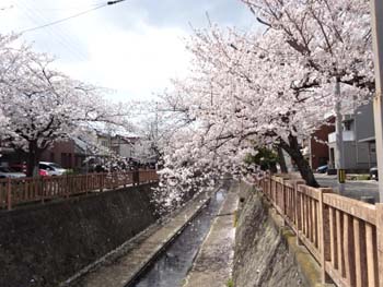 ちょうど桜が見頃で川沿いには桜が植えられているので楽しめます。