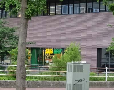 いつもの橋から写真を撮って、ふと見るといつぞや突如建物が建て替わったことに気付いた元・株式会社宇徳の倉庫だったビルの1Fにサブウェイが!