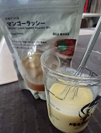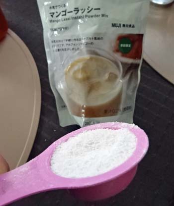 無印良品のマンゴーラッシー(粉末)をすりきり一杯入れて計量するとぴったり11gなので非常に便利です。
