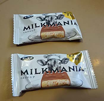 バタークッキーとミルクパウダーが混ざったものをチョコがけしてチョコレートバーにしたもの。強いミルク風味ですが、クリーム風味パウダーと練乳パウダーが混じっているとか。あくまでミルククリームではなく、ミルクパウダーなので独特なミルク風味、そして食感。