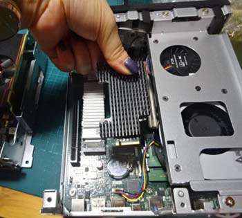 ヒートシンク用放熱シリコーンパッドなるものがヒートシンクとSSDの間に入っていて、ぺったり密着していたので簡単に取れなかった模様。