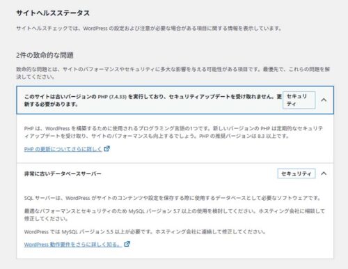 ブログの記事を書くたびにWORDPRESSの警告文が目に入ります。