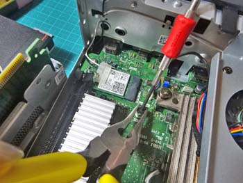 またマザーボードを壊すといけないので、先曲がりペンチで押さえながら回してみます。
