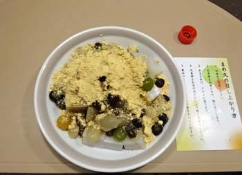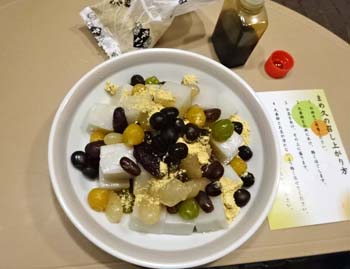 久寿餅とお豆と黒蜜と黄な粉が入っています。