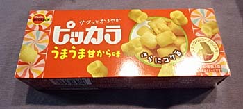ピッカラは昔はチップスターみたいな筒に入ってました。確かに昔のお菓子です。