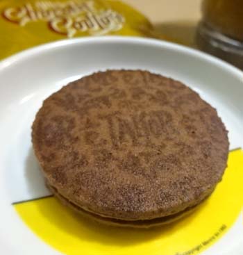 ちょっと写真の撮り方がイマイチでわかりにくいですが、ソース入りのチョコレートが挟まってます。