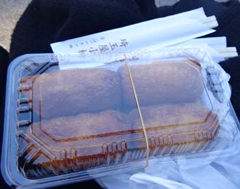 お勧めの一品は売り切れていましたが、ちょうどお稲荷さんが売っていたのでお昼ご飯用にお稲荷さん、それと聖夜というお菓子を購入。
