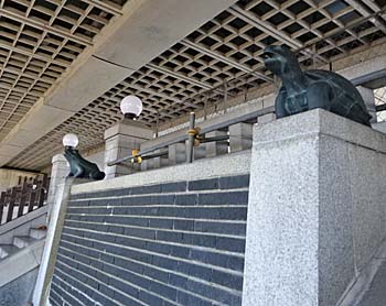 桜橋という橋の袂に亀と蛙がいたのですが、どうやら噴水の様子。